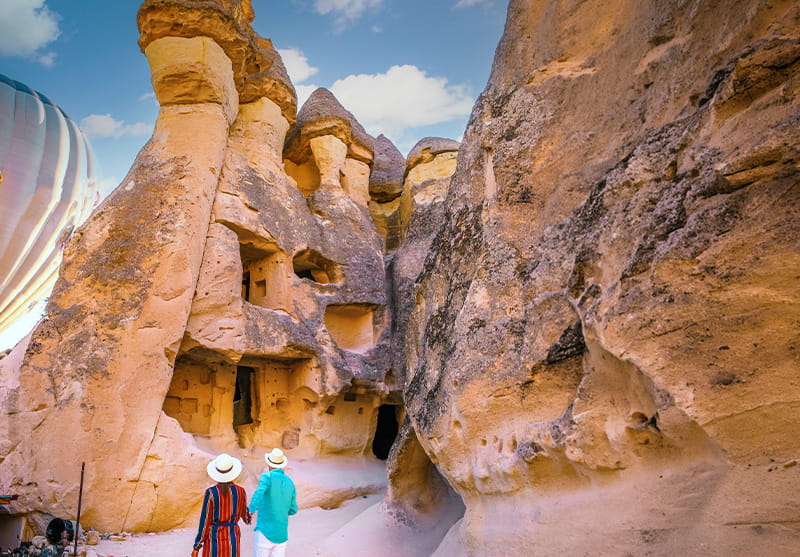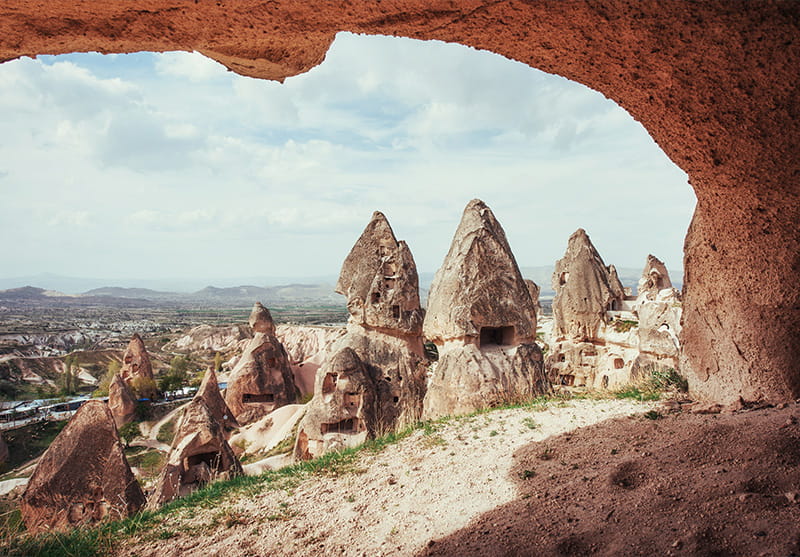 Durante el recorrido podrá admirar las famosas chimeneas de hadas, valles volcánicos y miradores panorámicos que hacen de Capadocia un destino único en el mundo. El itinerario incluye visitas a algunos de los lugares más representativos de la región, como el Museo al Aire Libre de Göreme, declarado Patrimonio de la Humanidad por la UNESCO, el Valle de Pasabag, conocido por sus impresionantes formaciones rocosas, y diferentes miradores desde donde se pueden apreciar los espectaculares paisajes de Capadocia.